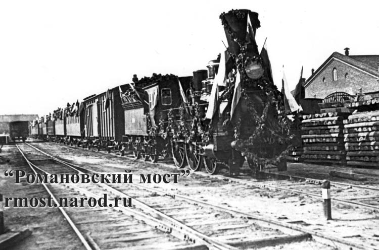 Открытие моста. Прибытие поезда на правый берег Волги |